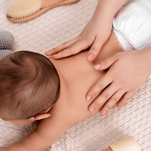 Eine der schönsten Arten miteinander zu kommunizieren, ist die Berührung – sie bringt uns Wärme und Geborgenheit. Mit der sanften Berührung während der Babymassage nimmst du Dir gemeinsame Zeit für Euch, stärkst die Kommunikation mit Deinem Baby und vertiefst Eure Beziehung. Die Zeit im Wochenbett, das gemeinsame Kennenlernen und die Umstellung „Familie zu sein“ bringt viele Auf und Ab´s und noch mehr Fragen in Euer Leben – hier findest Du einen geschützten, ruhigen Rahmen, in dem Entspannung und Wohlbefinden groß geschrieben wird – eine Zeit des gemeinsamen Austausches und Genießen auf allen Ebenen und Sinnen. Der Babymassagekurs ist für Babys ab der 6. Woche geeignet. Bitte bringe 2 mittelgroße Handtücher, eine wasserfeste Wickelunterlage und ein Öl (Mandel- oder Weizenkeimöl) zu den Kursstunden mit.